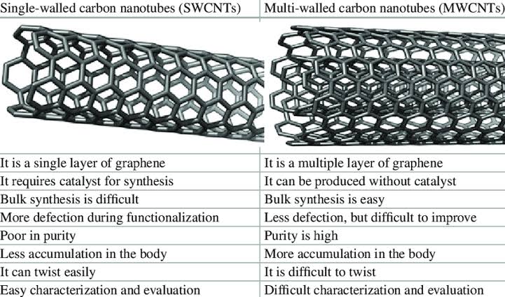 While multi-walled carbon nanotube consists of several concetric graphene cylinders.