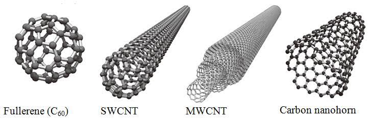1) Russian doll model– this is a carbon nanotube containing inside another carbon nanotube of smaller diameter .They look like sheets of graphite arranged in concentric cylinders.