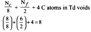 Then no of C atoms per unit cell = (1/8)*8+(6*(1/2))+4=8