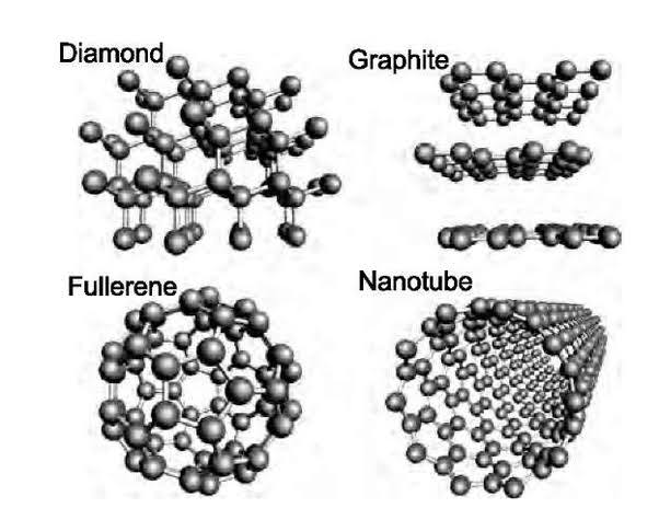 Carbon forms gaint covalent structures including diamond and graphite .It also forms Nanotubes and fullerenes.